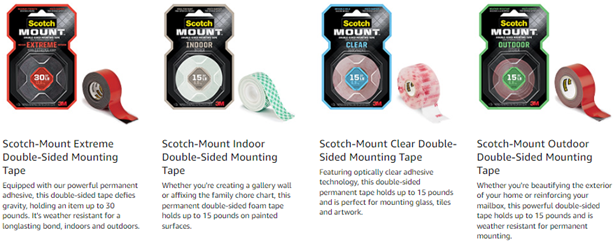 Scotch-Mount™ Indoor Double-Sided Mounting Tape is ideal for painted surfaces and allows you to quickly and easily beautify and organize your space. Whether you’re creating a gallery wall or affixing the family chore chart, this permanent double-sided foam tape holds up to 15 pounds and delivers a strong bond every time because of its 3M™ industrial strength adhesive. Your work is up and ready to admire in 30 seconds flat – no nails or hammer needed. Never let how you’re going to hang it get in the way of your creativity with the powerful adhesion of Scotch-Mount™ Indoor Double- Sided Mounting Tape