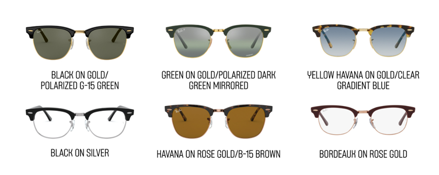 - Classic clubmaster sunglasses: The Ray-Ban Clubmaster has an iconic look, shape, feel, and style. Worn by cultural intellectuals and Hollywood superstars, these superior glasses are both comfortable and fashionable