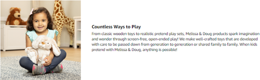 From classic wooden toys to crafts, pretend play, and games, Melissa & Doug products provide a launch pad to ignite imagination and a sense of wonder in all children so they can discover themselves, their passions, and their purpose.Since the company’s founding more than 25 years ago, Melissa & Doug has consistently delivered innovative products that inspire open-ended thinking, encourage kids to see new possibilities, and offer Countless Ways to Play. It’s part of a bigger vision to Take Back Childhood. Because by giving children a true childhood with the space and freedom to explore their world, we give them a path to realizing their full potential!