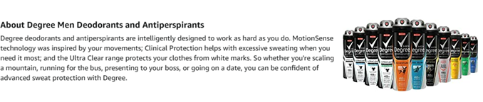 Degree Men UltraClear Black + White Antiperspirant Deodorant Dry Spray with long-lasting MotionSense technology goes on instantly dry for a cleaner feel and is specially designed to keep your clothes looking new. No white marks on black clothes and no yellow stains on white clothes. You'll look great all day and free from deodorant stains. This antiperspirant for men has a formula that cuts down on the stains that some antiperspirants leave behind when they mix with sweat and natural oils produced by your body. It also provides 72-hour sweat and odor protection and goes on instantly dry to keep you moving and free to live life to its fullest. This antiperspirant deodorant spray also contains Degree's innovative MotionSense technology. It works like this: unique microcapsules sit on the surface of your skin. When you move, friction breaks those microcapsules, and they release more fragrance. So, every time you move, Degree keeps you fresh and free from odor. At Degree, we're doing everything we can to help keep the planet moving. That's why our antiperspirant deodorant dry spray cans are made with infinitely recyclable aluminum.