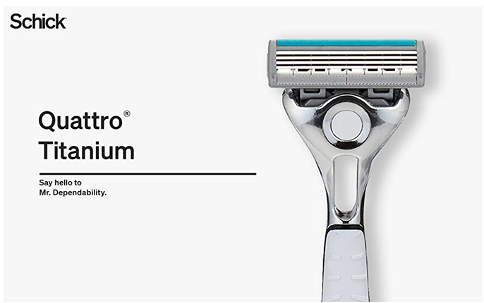 We all have that friend we can rely on through thick and thin. The Schick Quattro Razor is that friend. It’s always there for you in times of stubble, providing a consistent, clean shave with its 4 titanium-coated blades. You won’t find a better shave for a better price. The Schick Quattro for men is a titanium razor that features an edging blade, pivoting head, ergonomic handle, and a lubricating strip for a truly exceptional shave.