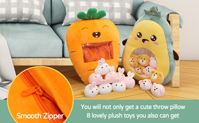 - ★A bag of soft stuffed rabbit toys, sooo cute! There are 8 small stuffed bunnies in each cute carrot throw pillow, they are eye-catching for your kids and you can take them out as home decorations.