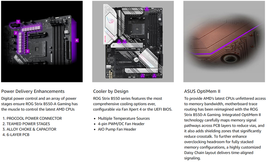 Experience next-level performance and connectivity with the ROG Strix B550-A Gaming, featuring PCIe® 4.0 and 2.5Gb Ethernet. Robust power and effective cooling make the ROG Strix B550-A Gaming the perfect partner for 3rd Gen AMD Ryzen™ CPUs. Futuristic aesthetics, intuitive software, and a reliable Stack Cool 3+ design put your build in the winner’s circle. Free 3-months Adobe Creative Cloud Subscription: Receive complimentary access with the purchase of this product (offer valid from 9/15/2021 to 9/15/2022) visit https://www.asus.com/us/content/asus-offers-adobe-creative-cloud/ to claim.