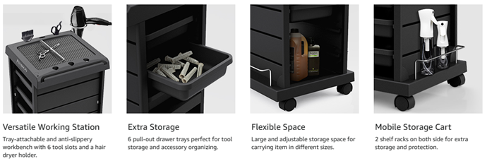 ✅ MULTIPLE COMPARTMENTS FOR ACCESSORIES: Set aside your stuff like magazines, water bottles, grooming products, or accessories such as mirrors on the two stainless steel bottom racks of the salon trolley cart.