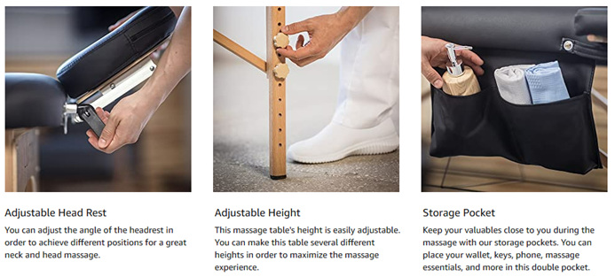 PORTABLE AND FOLDABLE: Now you can enjoy or give relaxing massages wherever you go. This portable massage table is designed to fold up into a compact bundle that you can travel with ease with the carrying bag. It is foldable with a compact design and a carrying bag. It even comes with a face hole in the middle for shorter people and a side pouch for oils or other accessories.
