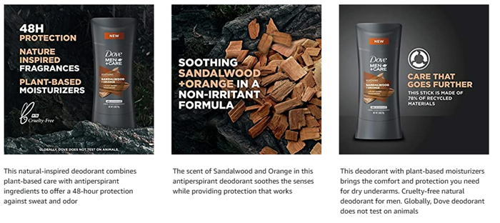 A natural inspired deodorant with 48-hour protection against sweat and odor, and a lasting soothing feeling - that's the Dove Men+Care antiperspirant with Sandalwood and Orange. For men who want protection that works through busy, active days, this antiperspirant deodorant is made to leave you feeling dry for a full 48 hours. This antiperspirant for men is one of the strongest defenses against sweat and odor, with natural essential oil extracts, plant-based moisturizers and the soothing aromas of Sandalwood and Orange. This deodorant offers long-lasting performance and comfort because it's tough on sweat, but not on the skin. Swipe with ease to experience a smooth glide and keep your underarms feeling soothed for the long-lasting protection that you need. You can also rest assured that Dove's global commitment to sustainability means this deodorant is cruelty-free, with no testing done on animals. To complete your grooming routine, explore the entire Dove Men+Care Plant-Based Care range. Whether it's the Dove Men + Care Charcoal Clove Body Wash or the Dove Men + Care Eucalyptus+ Birch, there are many options to pair this deodorant with. You can also choose from Dove Men + Care 0 percent Aluminum deodorant sticks and sprays available in invigorating scents like Lime + Sage and refreshing ones like Eucalyptus + Birch.
