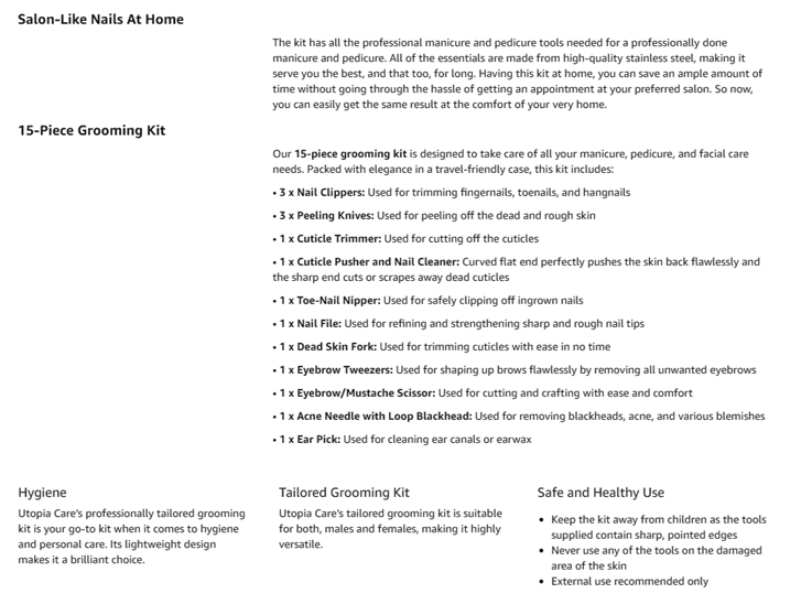 VERSATILE- Our kit is designed purposefully to perform a variety of functions including hand care, foot care and facial treatment. Enjoy a trouble-free manicuring, pedicuring, and eyebrow shaping experience, all done in one valuable set