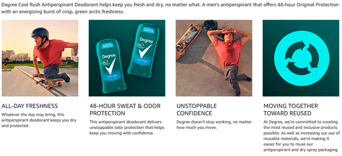 - Degree’s Cool Rush antiperspirant deodorant with 48H non-stop protection, non-stop confidence, making it one of their best deodorant for men that’s strong enough to keep up with you all day