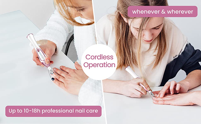 ★【Rechargeable, Cordless and Use up to 10-18 hours】New Version nail drill machine- the built-in lithium battery delivers up to 10 -18 hours of cordless use when fully charged. The LED light provides a highlighted view during use, achieving a precise manicure and pedicure. Have salon-quality manicures and pedicures at anytime anywhere.
