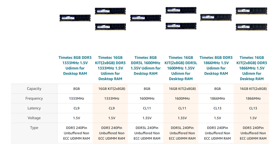 - DDR3 1333MHz PC3-10600 240-Pin Non-ECC Unbuffered 1.5V CL9 Dual Rank 2Rx8 based 512x8