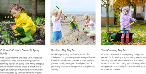 SKILLS & EDUCATIONAL: Kids Yard Tools help improve hands-on skills. It also helps kids to develop a sense of nature, learn about plants while they grow flowers or help parents do garden work. Perfect to turn gardening into family fun and get kids out and away from electronics screens.