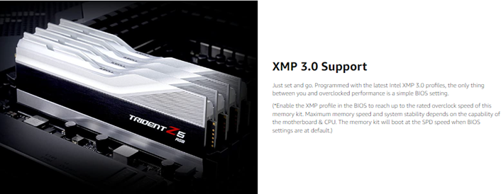 - For memory kits with XMP, enable XMP profile in BIOS to reach the rated potential XMP overclock speed of the memory kit, subject to the use of compatible hardware.