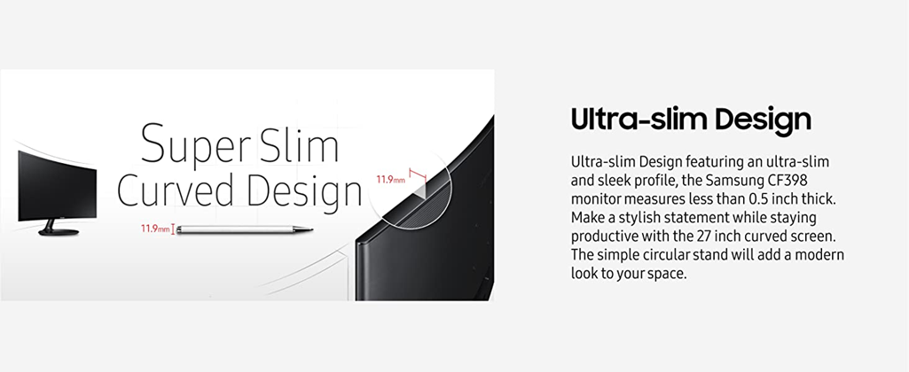 - SUPER SLIM DESIGN: Make a stylish statement with its ultra-slim and sleek profile; Monitor measures less than 0.5 inch thick and the simple circular stand adds a modern look to your space