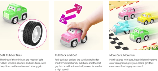 - ?【High-quality Girl Toys】---Safe & Perfect toys for 1 2 year old girl. The scientific size design of the car toy is very suitable for children's small hands, make children to enjoy more fun. At the same time, the overall toy uses high-quality and durable ABS soft plastic , smooth contour and no burrs, won't harm baby's delicate skin. Comply with U.S. toy safety standards.