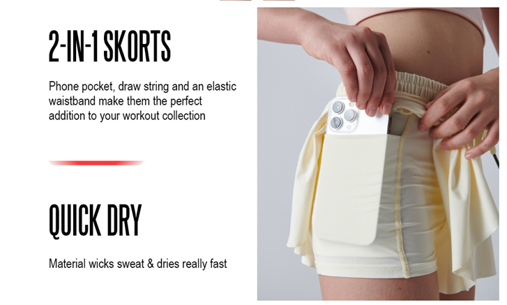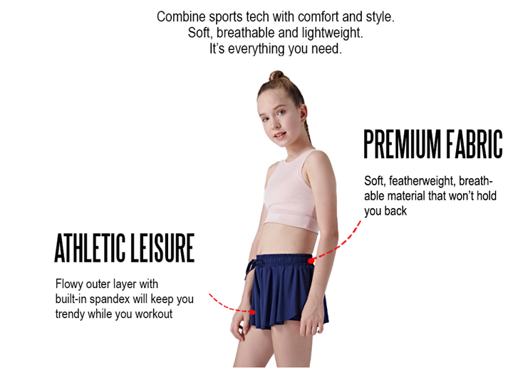 BUILT-IN SPANDEX: Pleated skirts with shorts underneath for girls features flowy outer layer and compression liner underneath.