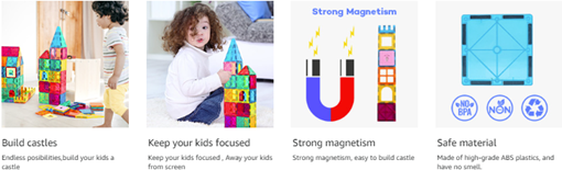- Magnetic building tiles set: 98 basic shapes plus 2 cars ( squares, triangles, Rectangles, E-shapes,doors,click-ins),with beautiful package and an idea book. Compatible with other brands Superior quality, ASTM-approved, lead-free, ABS plastic, food-grade material, strong magnets sealed within the plastic frame.safe play toys for your kids