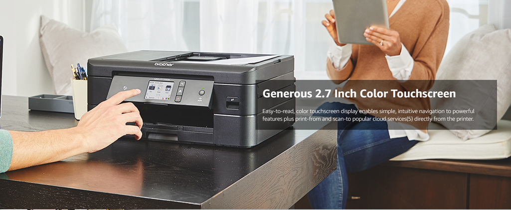 The MFC-J1170DW is easy to connect and operate along with being compact and economical making it ideal for your home office or small office needs. Featuring fast inkjet print – up to 17 ppm black and 16.5 ppm color(6). Its robust features, high quality output, duplex printing and business-centric functionality are not all normally found in similarly priced inkjet printers. Offering multiple connection options including a built-in wireless(3) interface for sharing with multiple network users, Wi-Fi Direct(R), Ethernet or connect via a USB interface. There’s no network setup needed for NFC one “touch to print and scan” mobile device printing(4). A 2.7 inch color touchscreen enables easy navigation to access powerful features plus print-from and scan-to popular cloud services directly from the printer(5). Also featuring the Brother Mobile Connect(1) App, that gives you the freedom to print and manage your printer from virtually anywhere. The MFC-J1170DW also features the unique Brother Page Gauge(2) which estimates remaining page levels, so you always know how much ink you have left. Use the 20- page capacity automatic document feeder or the 150-sheet capacity adjustable paper tray for generous output without constant monitoring. Includes a 2-year limited warranty and free online, live chat or phone support for the life of the printer. Works with Alexa.(1) Requires wireless network connection; Brother Mobile Connect free app download not available in all countries.(2) Page Gauge is an estimate for informational purposes only. For actual cartridge yield information refer to manufacturer’s website.(3) Requires wireless network connection.(4) The mobile device must have NFC capability and run Android OS 4.4 or later.(5) Requires Internet connection and an account with desired service.(6) Based on ISO/IEC 24734 (after first set of ISO test pages). For inkjet print speed methodology, please visit manufacturer’s website.(7) All page yields are approximate and are calculated in accordance with ISO/IEC 24711; for additional page yield info, see manufacturer’s website.(8) Based on average monthly print volumes of approximately 100 pages at 60% black pages/40% color pages in accordance with ISO/IEC 24711 using 4 cartridges provided in-box. For additional page yield information, see manufacturer’s website.(9) Based on average monthly print volumes of approximately 150 pages at 60% black pages/40% color pages in accordance with ISO/IEC 24711 using 4 cartridges provided in-box. For additional page yield information, see manufacturer’s website.(10) Requires connection to a wireless network. AirPrint is a registered trademark of Apple Inc. Mopria® is a registered trademark or service mark of Mopria Alliance, Inc. in the United States and other countries. Unauthorized use is strictly prohibited. Wi-Fi Direct is a registered trademark of Wi-Fi Alliance®. Brother Mobile Connect and Brother iPrint&Scan free app download are not available in all countries.Images are for illustrative purposes only. Specifications subject to change.