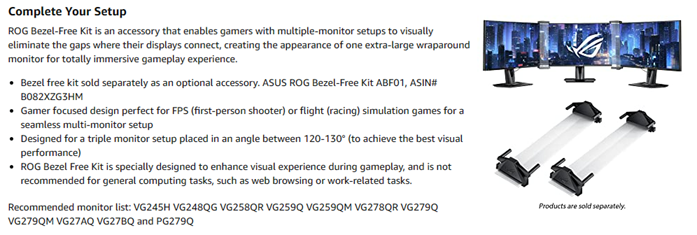 The 24” Asus VG248QG delivers a blistering Fast 165Hz refresh rate and 0.5ms response time to a full HD resolution The ergonomically-designed stand ensures ultimate viewing comfort during gaming while Asus Eye Care technology minimizes eye fatigue Asus exclusive game visual and game plus technologies enhance color performance and control. Viewing Angle (CR≧10): 170°(H)/160°(V).