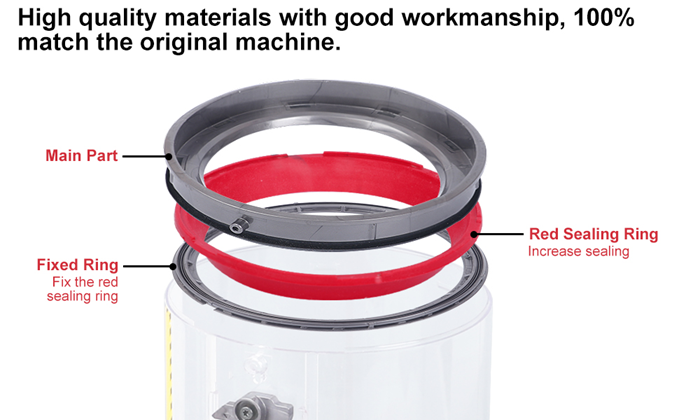 - ?The red sealing ring will be aged after a long time use and it will easily adsorbed on the inner wall of the dust bin, the fixing ring will easy to break and cannot be used for fixing. These problems will cause the bin fall down or difficult to take down from the machine, the dust collection effect also becomes worse. At this time, you need to replace a new sealing ring for your machine.