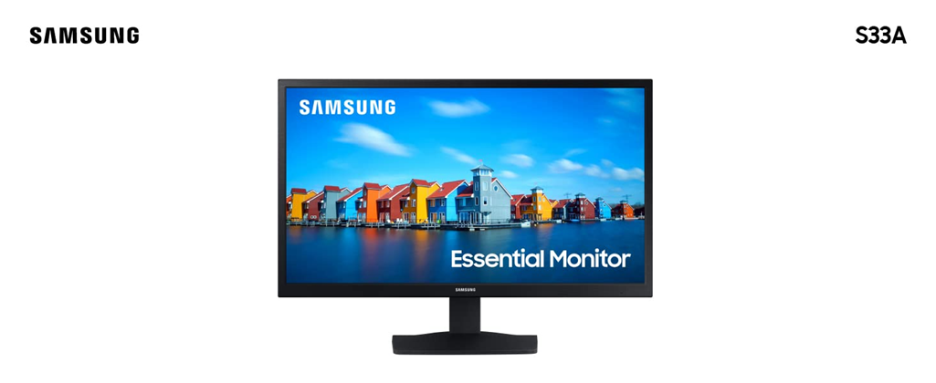 The Samsung S33A FHD monitor has a wide viewing angle and 3000:1 contrast ratio that gives you a clear, vivid display the whole way around. With Eye Saver, Flicker Free Technology and Game Mode, you can work and play with less strain and more efficiency. HDMI and D-Sub ports make connectivity easier. Wide 178° viewing angle keeps documents and graphics consistently accurate. Game Mode optimizes screen contrast to give player a competitive edge.