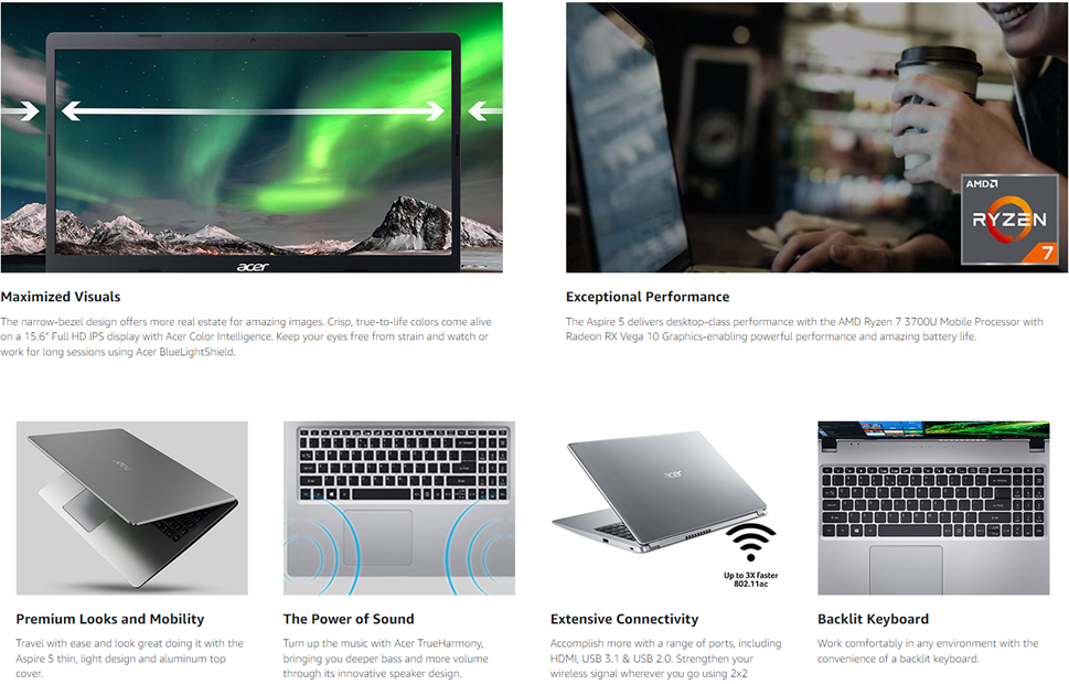 It's all about the innovation. Acer products are designed for your needs and accessibility with powerful features fit for your lifestyle. The Aspire 5 packs a lot of power into the portable design to suit the multi-tasking needs of you and your family. The desktop-class performance of this Acer Aspire 5 laptop with an AMD Ryzen 3 processor boosting performance while giving you amazing battery life. Enjoy photo and video editing on the color-rich 15.6-inch Full HD IPS display with AMD Radeon Vega 6 Graphics. All your creations and files stay secure with the bio-protected fingerprint reader and Windows Hello Certification ensuring protected access to your Acer Aspire 5. You can turn this Acer Aspire 5 into a virtual meeting room with an HD webcam and dual built-in microphones using Acer Purified.Voice Technology to carry your conversation clearly. Whether video chatting, streaming entertainment, or working in the home office, you'll stay connected to your network with dual-band Wi-Fi 6 working intelligently with your router to increase network efficiency. (NX.ABRAA.001).