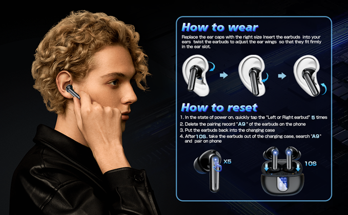 - Digital Power Display - Convenient to grasp the real-time power of the charging case and headphones' charging power level at any time to ensure timely charging for the charging case.