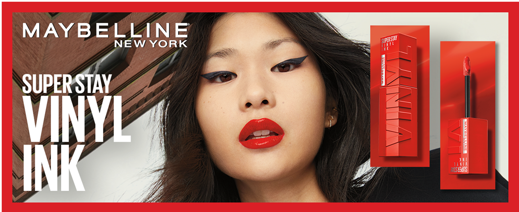 - Glossy Maybelline Superstay Vinyl Ink Liquid Lipstick: This longwear liquid cool red lipcolor delivers no-budge vinyl color and up to 16 hour wear, featuring our Color Lock formula that defies smudging and transfer; Simply shake and swipe