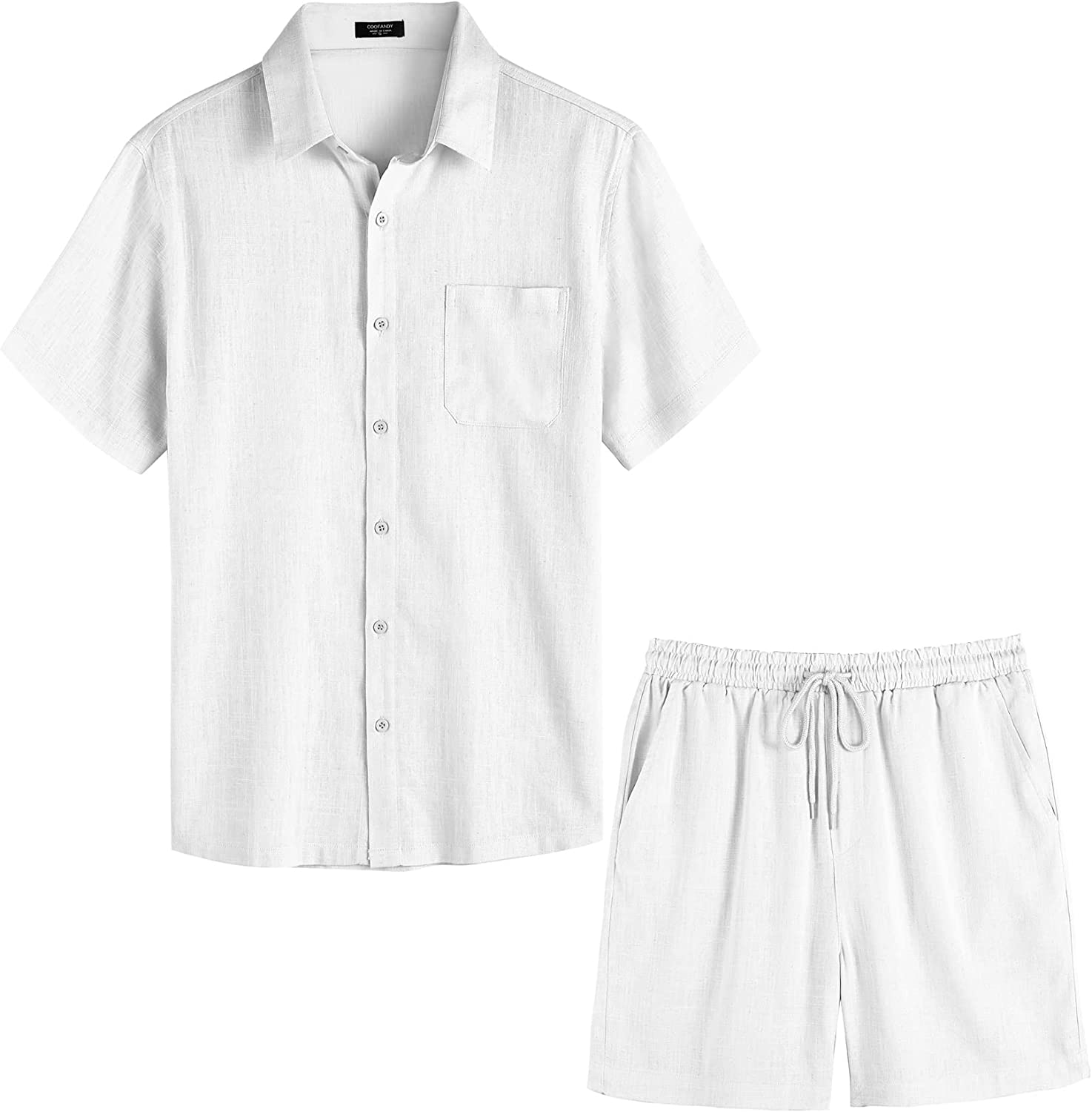 COOFANDY Men 2 Piece Linen Set Casual Beach Short Sleeve Button Shirt and Short Set