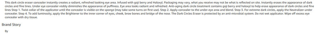 Anti-Aging Concealer: Turn back time with this anti-aging under eye treatment concealer infused with Haloxyl; Say bye bye to the look of fine lines, blemishes, redness, and dark circles, and hello to a radiant, well rested, refreshed looking eye area