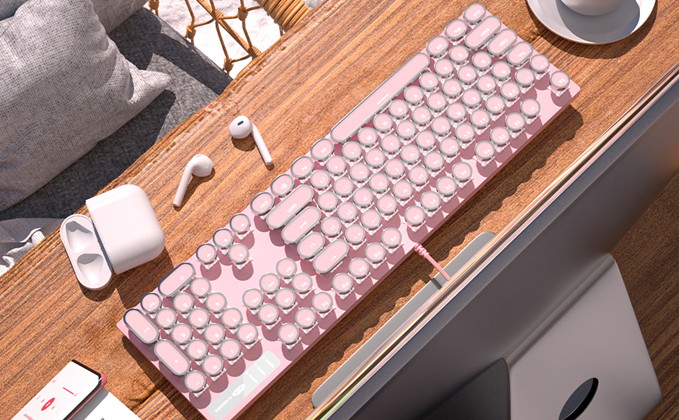 Keyboard Style: Cute Retro Steampunk Typewriter Keyboard with Round Keycaps