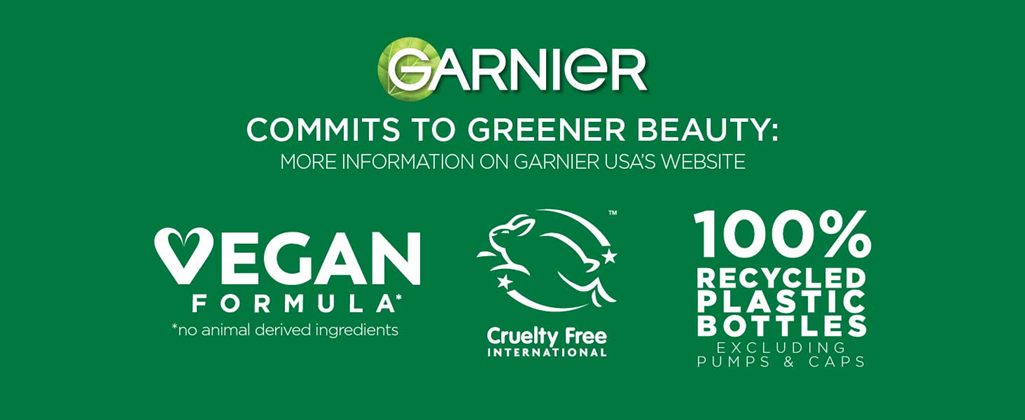 - Garnier is committed to Greener Beauty - our bottles excluding pumps and caps are made of 95% Recycled Plastic
