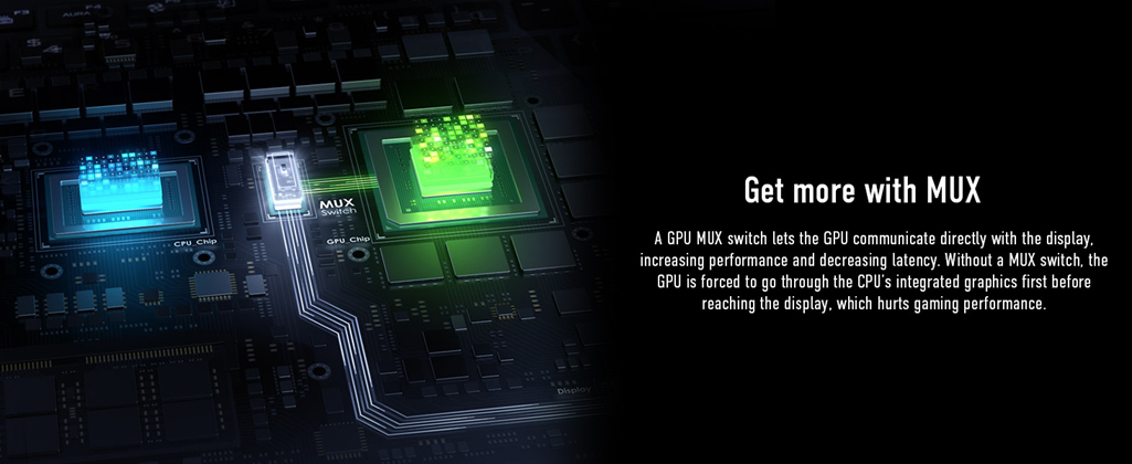 - MUX SWITCH BOOST - A MUX Switch lets the GPU communicate directly with the display, increasing performance and decreasing latency