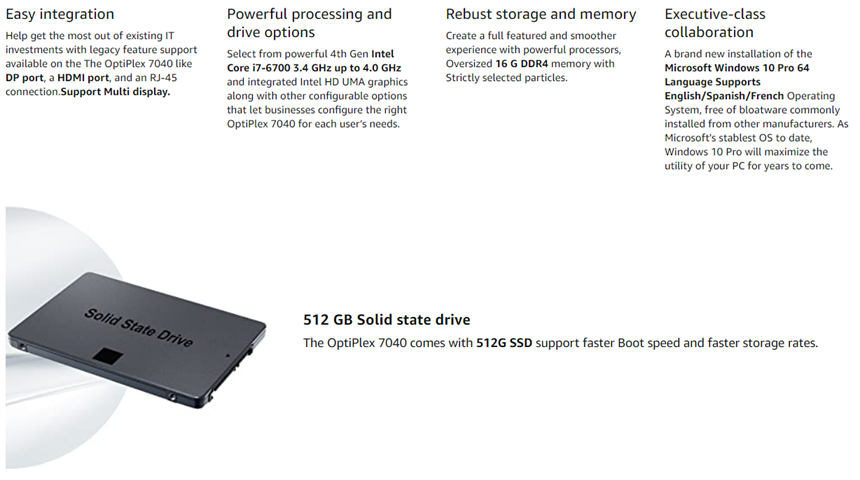 - Dell OptiPlex 7040 Small Form Factor PC, Intel Quad Core i7-6700 up to 4.0GHz, 16G DDR4, 512G SSD.