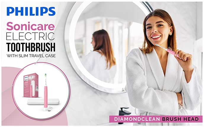 PHILIPS Sonicare Electric Toothbrush DiamondClean, Phillips Sonicare Rechargeable Toothbrush with Pressure Sensor, Sonic Electronic Toothbrush, Travel Case, White